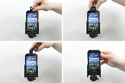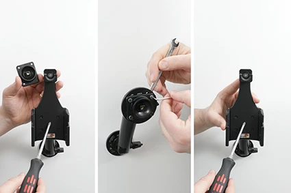 The holder is equipped with a tilt swivel so you can easily adjust the angle for better viewing, or switch between portrait and landscape mode. Tilts 17° and swivels 360°. Mounting plate 42x50 mm with 4 mm AMPS-holes. Made of high grade black ABS/Acetal plastic. Made in Sweden. Attach onto a Pedestal Mount or an ProClip mounting platform.