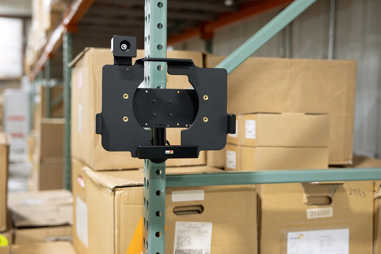 Attach the cradle onto any flat surface or Pedestal Mount in a forklift, truck, distribution vehicle, warehouse, table top etc. Backplate made of steel with 4 mm AMPS and 4 mm VESA 75 standard holes. Made of high grade ABS-, Acetal-plastic and metal. Color: Black. Made in Sweden.