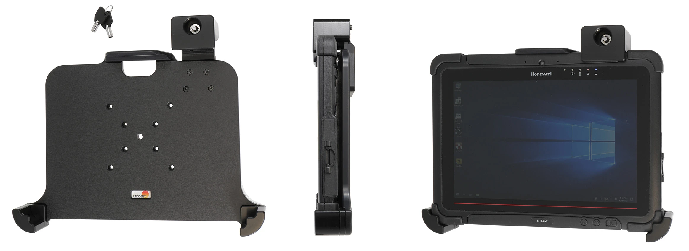 This holder is the perfect choice when you want to have your device securely locked in place and still easy accessible. The holder is made of extra strong plastic and is equipped with a lock. In order to remove the device from the holder you need a key (two keys are included). Attach the holder to any flat surface or a Pedestal Mount in a truck, distribution vehicle, warehouse etc. Predrilled AMPS and VESA 75 standard holes. You have full access to the camera and all buttons and outlets when the device is in the holder.