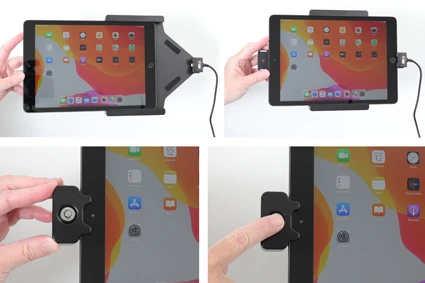 An installation of a tablet onto a vehicle’s dashboard is always done on the customer’s own responsibility. Brodit recommends to use tablets on a Pedestal mount or a Brodit headrest mount.