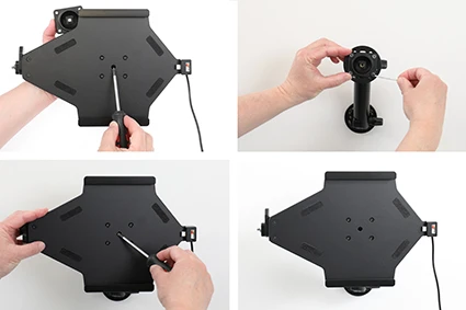 An installation of a tablet onto a vehicle’s dashboard is always done on the customer’s own responsibility. Brodit recommends to use tablets on a Pedestal mount or a Brodit headrest mount.