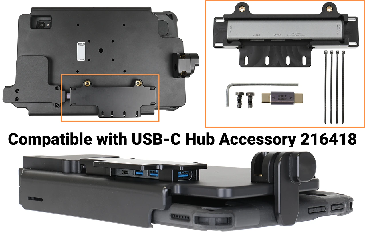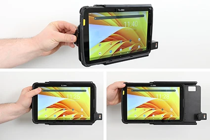 The Zebra ET4x series holders from Brodit are designed to withstand frequent wear and tear in professional every day use, providing a more productive working day and better working environment with your device within sight and reach. Safe, efficient and convenient! To get more out of your holder, you can choose both a power supply or accessories such as a USB hub.