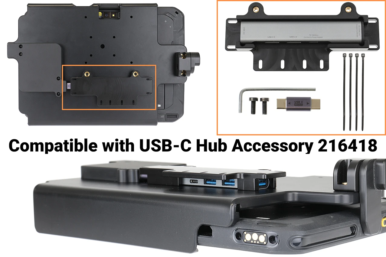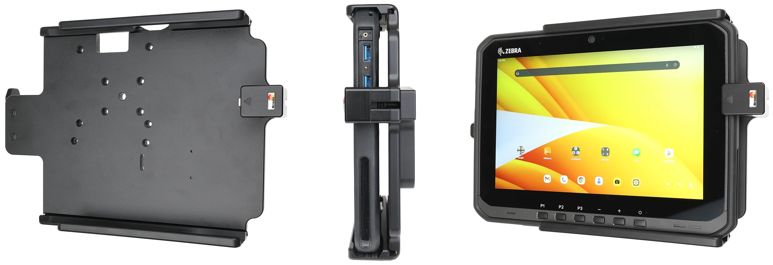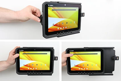 The Zebra ET6x series holders from Brodit are designed to withstand frequent wear and tear in professional every day use, providing a more productive working day and better working environment with your device within sight and reach. Safe, efficient and convenient! To get more out of your holder, you can choose both a power supply or accessories such as a USB hub.