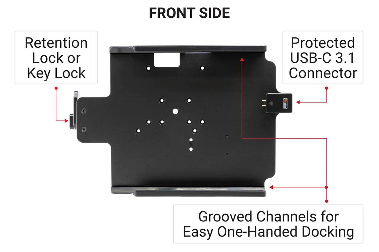 The cradle is customized with a perfect fit. It has a robust design for use in a normal forklift environment. You have full access to the camera,scanner, buttons and ports while docked. Easy one-hand insertion and removal.