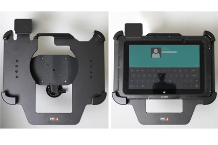 The holder is also perfect for use in stores, at exhibitions and any place where you want to use your Getac without having it easy removable. The holder is made of extra strong plastic. Fits devices with rugged frame, with and without expansion module/handstrap.