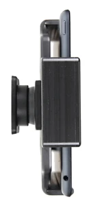 The holder is made of extra strong plastic and is equipped with a spring stud locking device. The holder is mounted onto a tilt swivel. This mean that you can adjust the angle in order to avoid light reflection on the screen. You can easily switch between portrait and landscape mode by turning the holder into desired position.