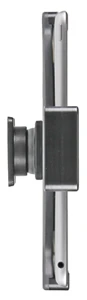 The holder is made of extra strong plastic and is equipped with a spring stud locking device. The holder is mounted onto a tilt swivel. This mean that you can adjust the angle in order to avoid light reflection on the screen. You can easily switch between portrait and landscape mode by turning the holder into desired position.