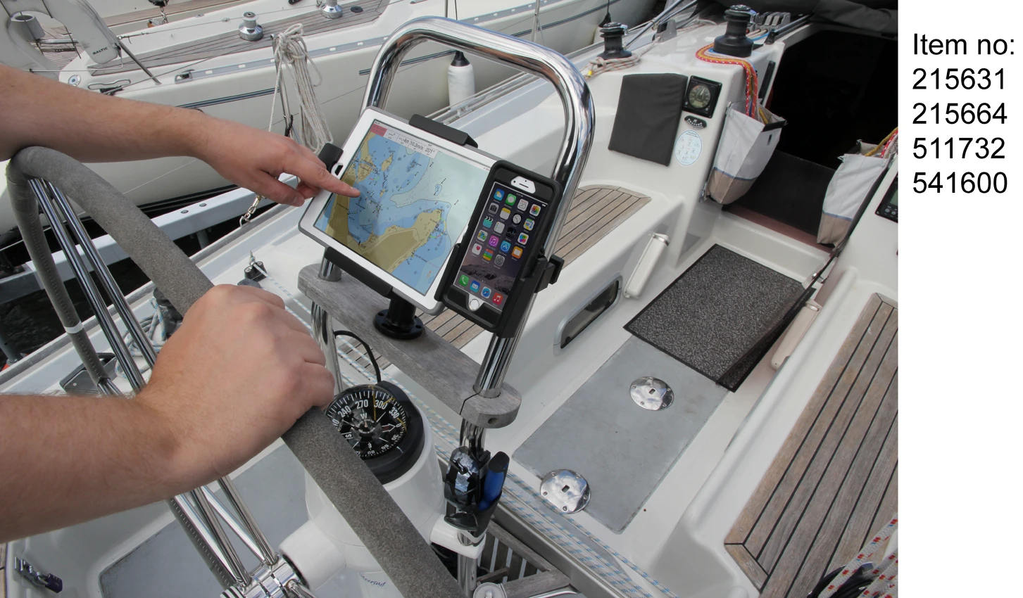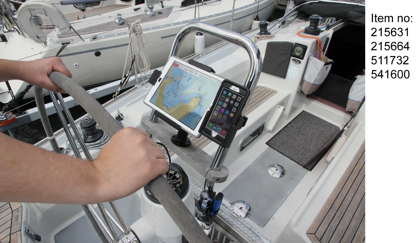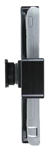 The holder is made of extra strong plastic and is equipped with a spring stud locking device. The holder is mounted onto a tilt swivel. This mean that you can adjust the angle in order to avoid light reflection on the screen. You can easily switch between portrait and landscape mode by turning the holder into desired position.