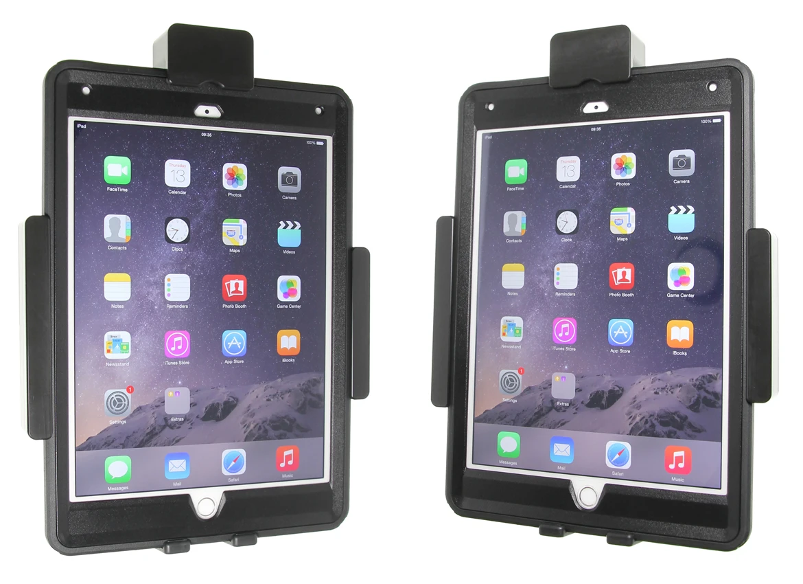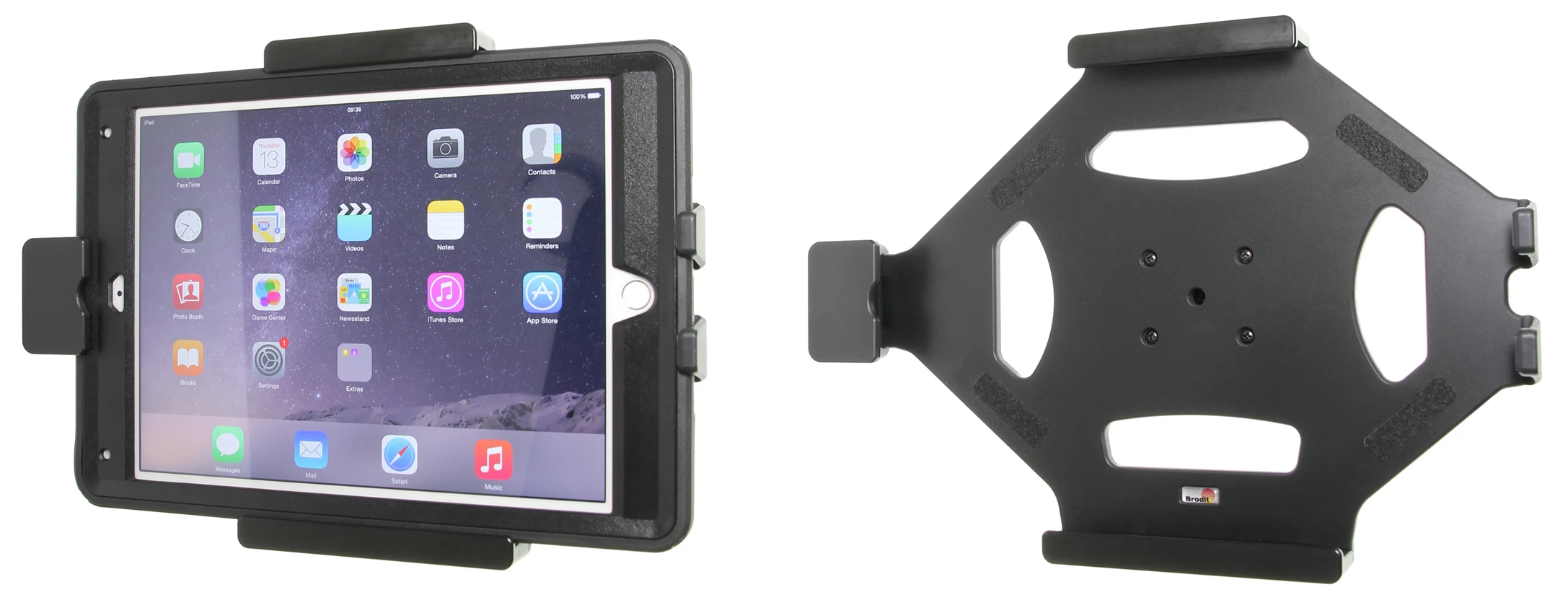 An installation of a tablet onto a vehicle’s dashboard is always done on the customer’s own responsibility. Brodit recommends to use tablets on the car’s headrest, installed onto a Brodit headrest mount.