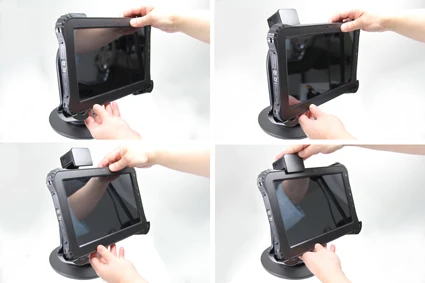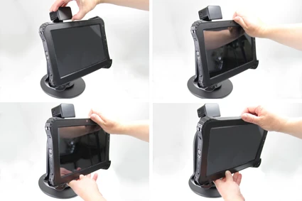 This holder is the perfect choice when you want to have your device securely in place and still easy accessible. The holder is made of extra strong plastic and is equipped with a spring stud locking device. Attach the holder to any flat surface or a Pedestal Mount in a truck, distribution vehicle, warehouse etc. You have full access to the camera and all buttons and outlets when the device is in the holder.
