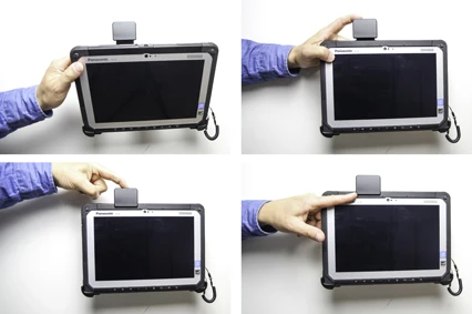 The holder is mounted onto a tilt swivel. This mean that you can adjust the angle in order to avoid light reflection on the screen. You can easily switch between portrait and landscape mode by turning the holder into desired position. It is easy to put the surfpad into place in the holder, and to take it with you when leaving the car.