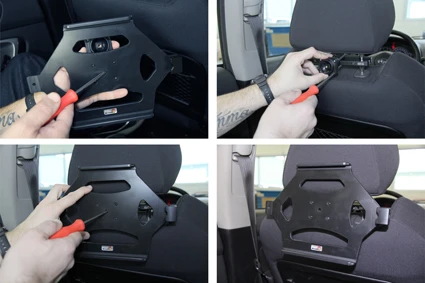 An installation of a tablet onto a vehicle’s dashboard is always done on the customer’s own responsibility. Brodit recommends to use tablets on the car’s headrest, installed onto a Brodit headrest mount.