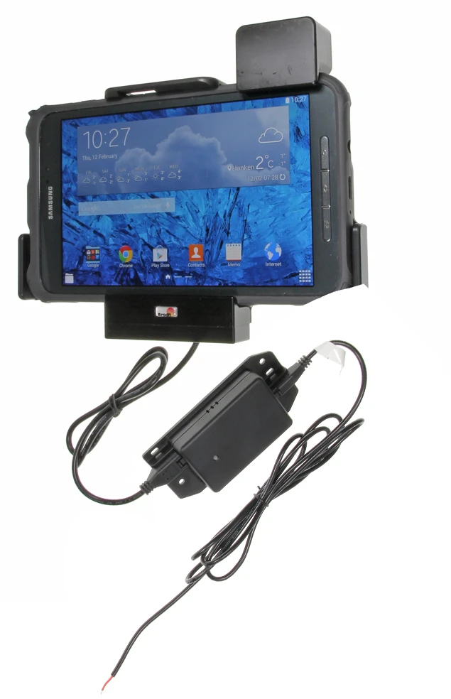 The active holder is to be connected inside the dashboard. It provides a discreet and neat installation without any cables hanging over the interior. Safe and convenient! 12/24 Volt. The product is E-approved. Connect the power cable with a 2 A fuse. 2,5A charger. Charging via pogo plug. Professional installation recommended.