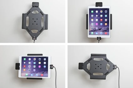 The holder with locking is to be used when you want to have your tablet extra firmly in place. The holder has a spring stud locking device, it keeps your device in a firm grip in the holder.