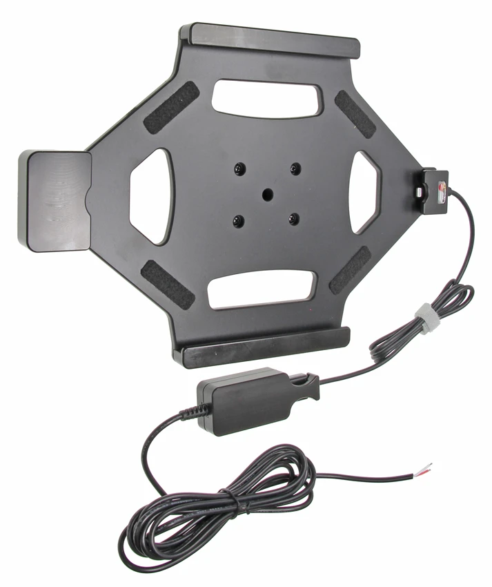 This holder is equipped with a cable for fixed installation for charging of your device. It provides a discreet and neat installation without any visible cables. 12/24 Volt. The product is E-approved. Connect the power cable with a 2 A fuse. 2 A charger. Professional installation recommended. The holder is mounted onto a tilt swivel. This mean you can easily adjust the angle for better viewing and switch between portrait and landscape mode simply by turning the holder into desired position.
