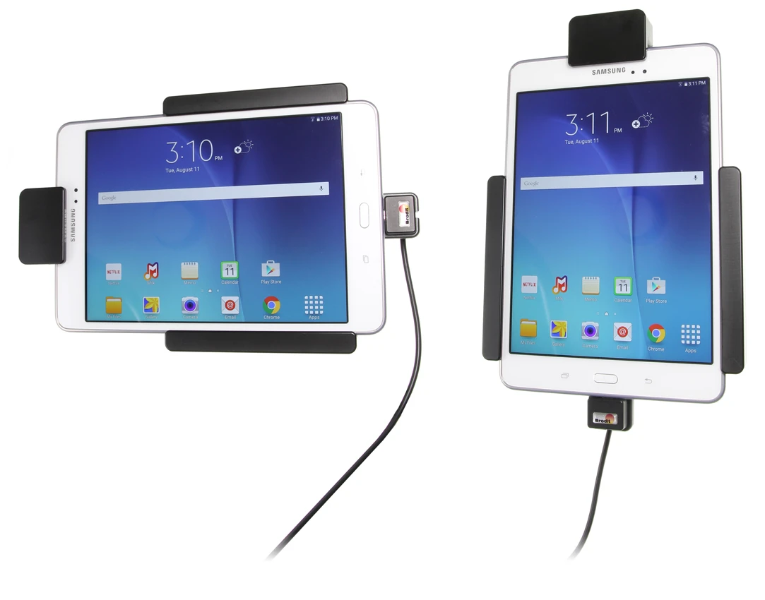 The holder with locking is to be used when you want to have your tablet extra firmly in place. The holder has a spring stud locking device, it keeps your device in a firm grip in the holder.