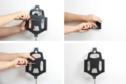 The holder with locking is to be used when you want to have your tablet extra firmly in place. The holder has a spring stud locking device, it keeps your device in a firm grip in the holder.