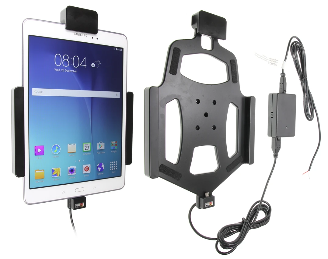 For fixed installation, provides a discreet installation without any cables hanging. 12/24 Volt. E-approved. Connect power cable with a 2 A fuse. 2 A charger. Professional installation recommended. The holder is mounted onto a tilt swivel so you can adjust the angle and switch between portrait and landscape mode.