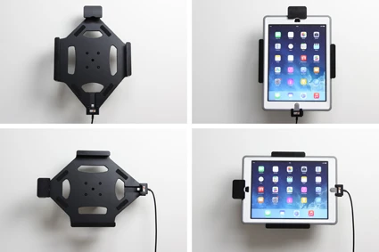 An installation of a tablet onto a vehicle’s dashboard is always done on the customer’s own responsibility. Brodit recommends to use tablets on the car’s headrest, installed onto a Brodit headrest mount.