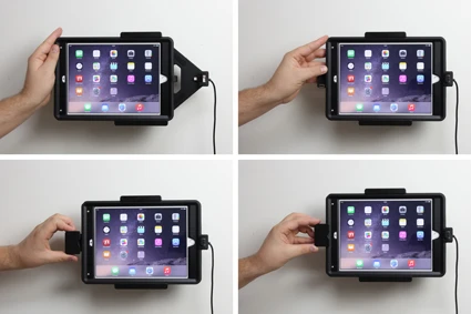 An installation of a tablet onto a vehicle’s dashboard is always done on the customer’s own responsibility. Brodit recommends to use tablets on the car’s headrest, installed onto a Brodit headrest mount.