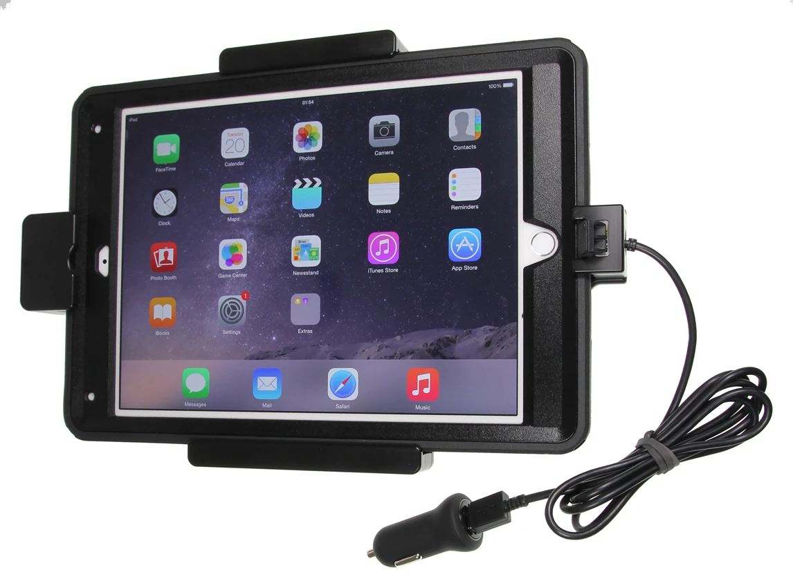 This holder is to be used when you want to have your iPad extra securely in place and still have it easy accessable. The holder is equipped with a cig-plug for connection to the vehicle's 12 Volt socket so you will always have a freshly charged battery!