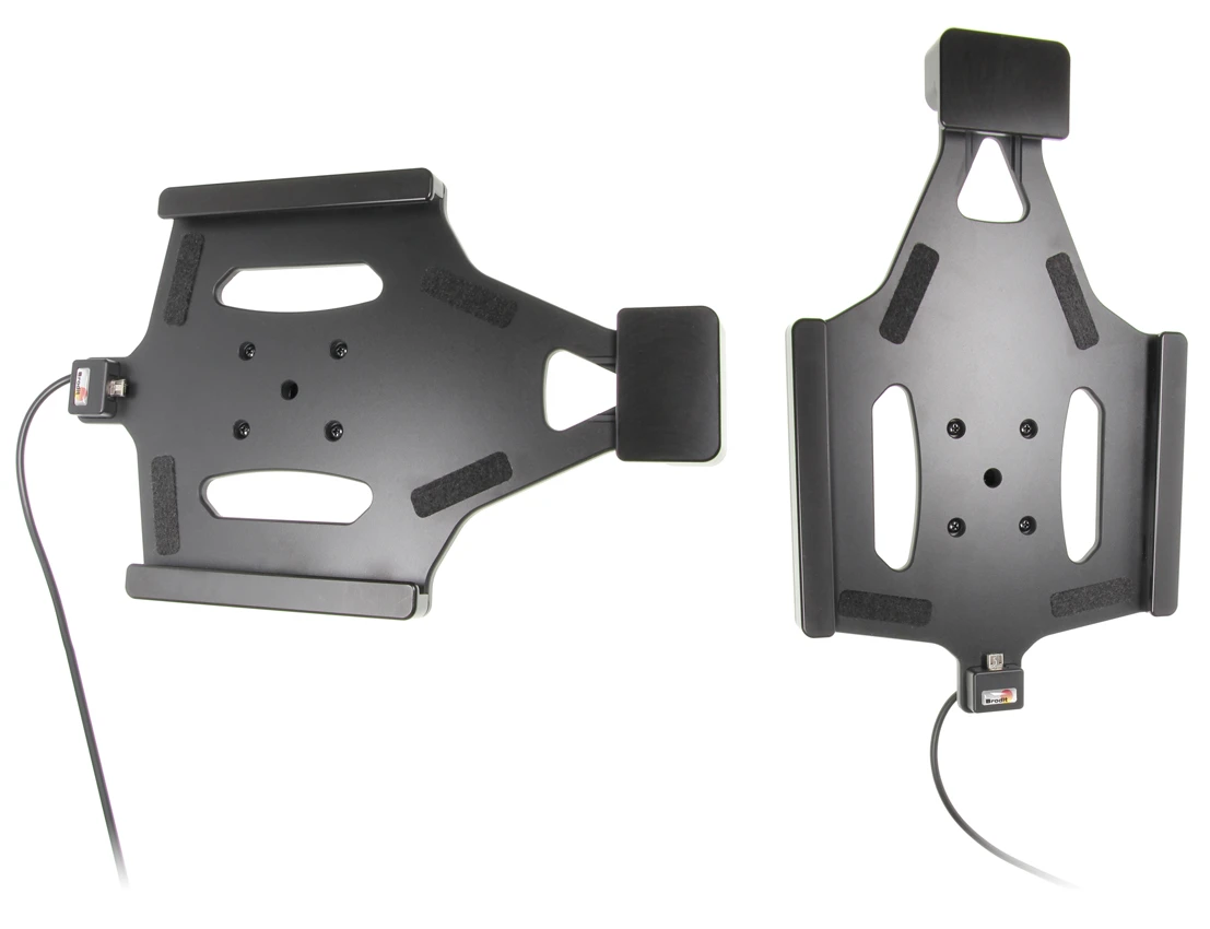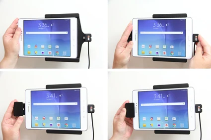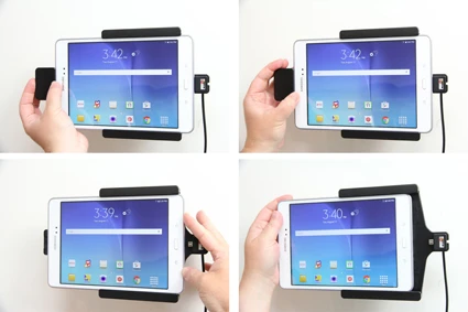The holder with locking is to be used when you want to have your tablet extra firmly in place. The holder has a spring stud locking device, it keeps your device in a firm grip in the holder.