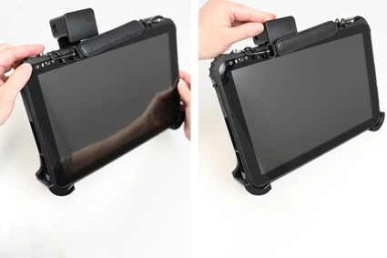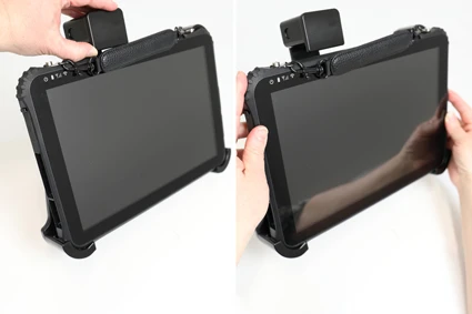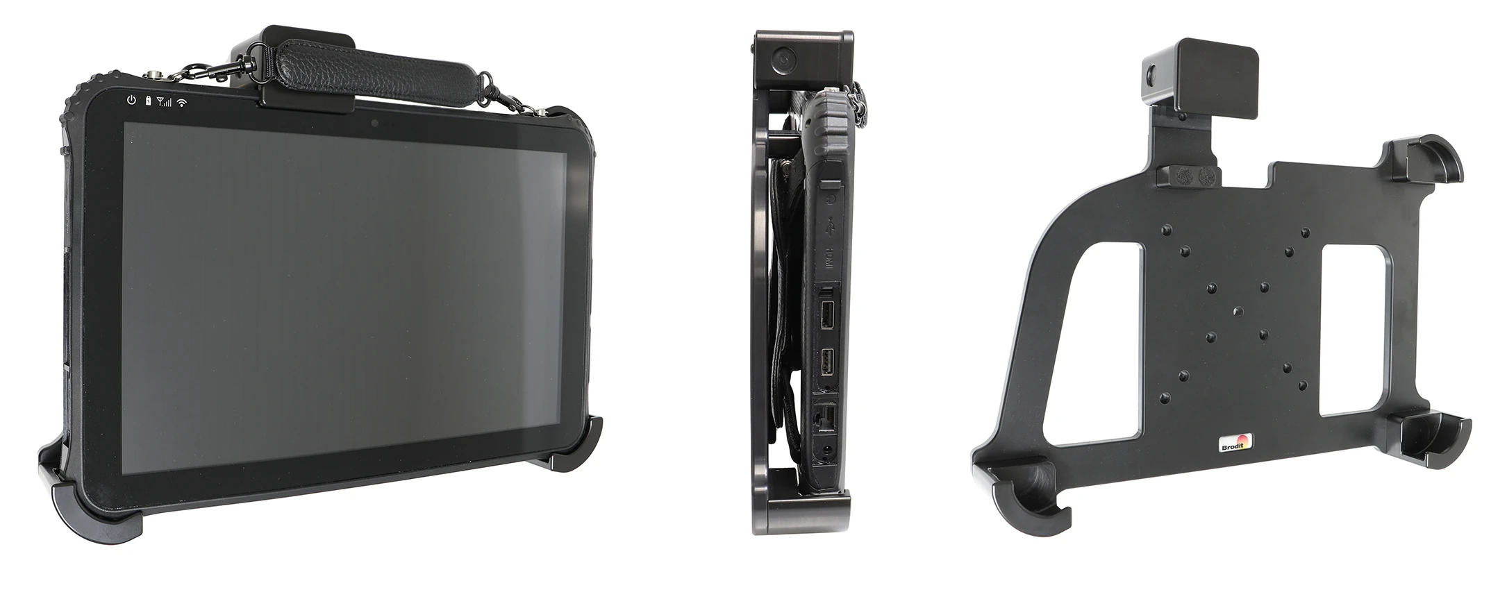 This holder is the perfect choice when you want to have your device securely in place and still easy accessible. The holder is made of extra strong plastic and is equipped with a spring stud locking device. Attach the holder to any flat surface or a Pedestal Mount in a truck, distribution vehicle, warehouse etc. You have full access to the camera and all buttons and outlets when the device is in the holder.