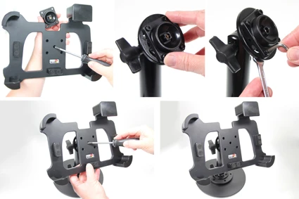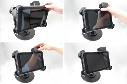 This holder is the perfect choice when you want to have your device securely in place and still easy accessible. The holder is made of extra strong plastic and is equipped with a spring stud locking device. Attach the holder to any flat surface or a Pedestal Mount in a truck, distribution vehicle, warehouse etc. You have full access to the camera and all buttons and outlets when the device is in the holder.