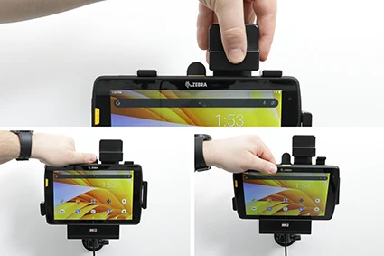 The Zebra ET4x series Module Upgrade Cradles from Brodit are designed to withstand frequent wear and tear in professional every day use, providing a more productive working day and better working environment with your device within sight and reach. Safe, efficient and convenient!