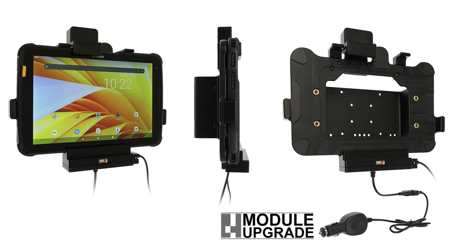 The Zebra ET4x series Module Upgrade Cradles from Brodit are designed to withstand frequent wear and tear in professional every day use, providing a more productive working day and better working environment with your device within sight and reach. Safe, efficient and convenient!