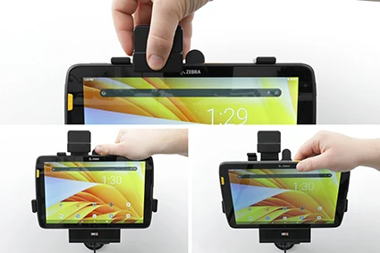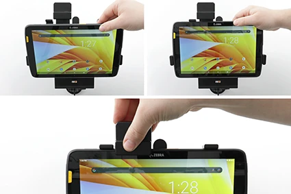 The Zebra ET4x series Module Upgrade Cradles from Brodit are designed to withstand frequent wear and tear in professional every day use, providing a more productive working day and better working environment with your device within sight and reach. Safe, efficient and convenient!