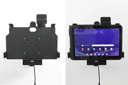This holder is to be used when you want to have your Tab Active 4 Pro extra securely in place and still have it easy accessable. The is equipped with a spring stud locking device. The holder is mounted onto a tilt swivel. This mean that you can adjust the angle in order to avoid light reflection on the screen. You can easily switch between portrait and landscape mode by turning the holder into desired position.