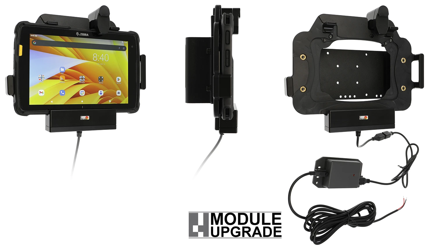 The Zebra ET4x series Module Upgrade Cradles from Brodit are designed to withstand frequent wear and tear in professional every day use, providing a more productive working day and better working environment with your device within sight and reach. Safe, efficient and convenient!