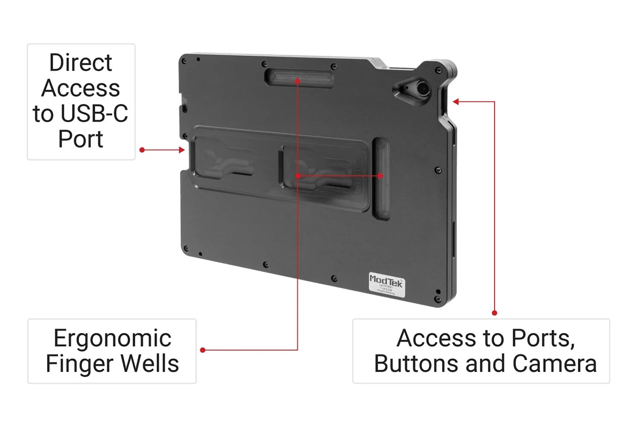 The ModTek Hard Case provides unmatched protection, shielding your tablet from wear and tear in daily use. The design ensures seamless access to all existing buttons, ports, cameras and the screen of the tablet. Additionally, the finger wells provide a comfortable and ergonomic grip for a secure hold.