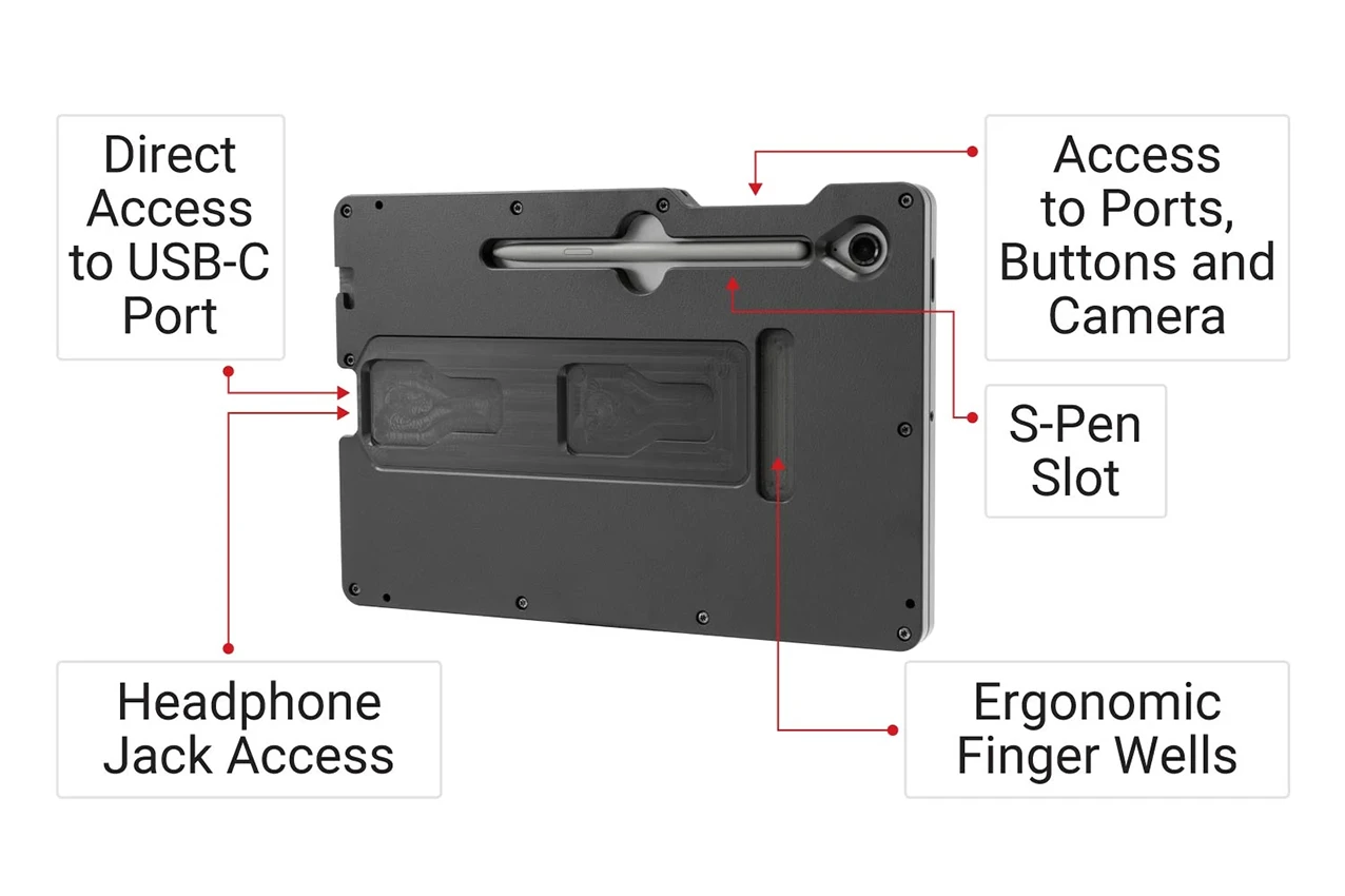 The ModTek Hard Case provides unmatched protection, shielding your tablet from wear and tear in daily use. The design ensures seamless access to all existing buttons, ports, cameras and the screen of the tablet. Additionally, the finger wells provide a comfortable and ergonomic grip for a secure hold.