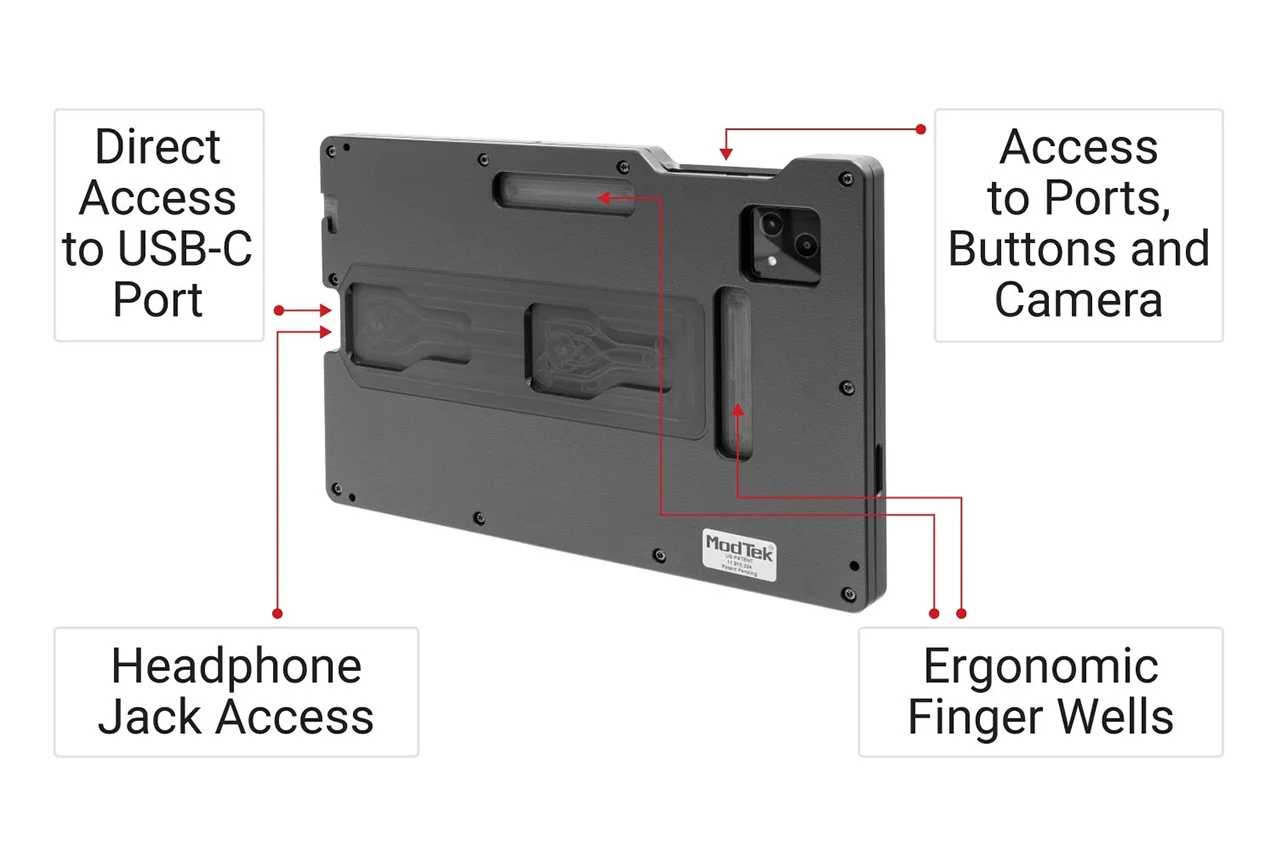The ModTek Hard Case provides unmatched protection, shielding your tablet from wear and tear in daily use. The design ensures seamless access to all existing buttons, ports, cameras and the screen of the tablet. Additionally, the finger wells provide a comfortable and ergonomic grip for a secure hold.