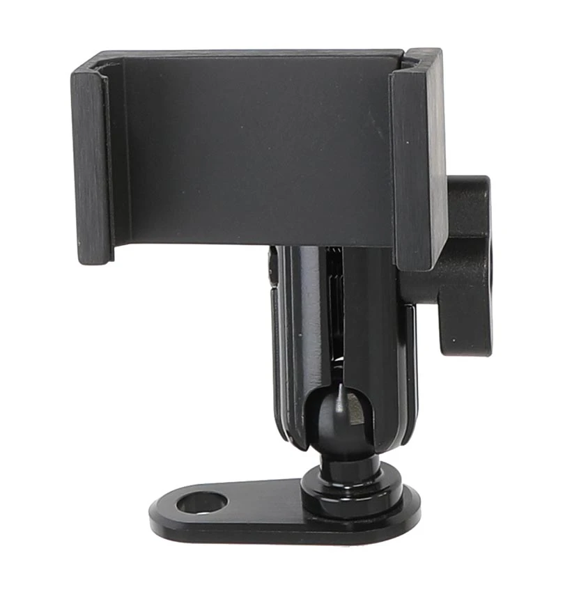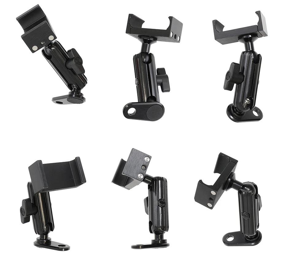 Stable motorcycle mount with mobile holder for attachment in the same mounting point used for the side mirror. The mount has two joints so you can easily adjust the angle and lock it in the desired position with the wingnut. The piedestal part is 71 mm long and turns 360°. Total length 95 mm. Fits motorcycle handlebars with a side mirror mount for 10 mm bars.