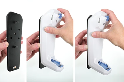 Place the mount onto the desired position. Screw the mount into place with the enclosed screws.
