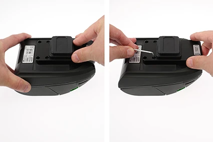 Place the mount onto the device so the holes match. Screw the two enclosed screws in place.