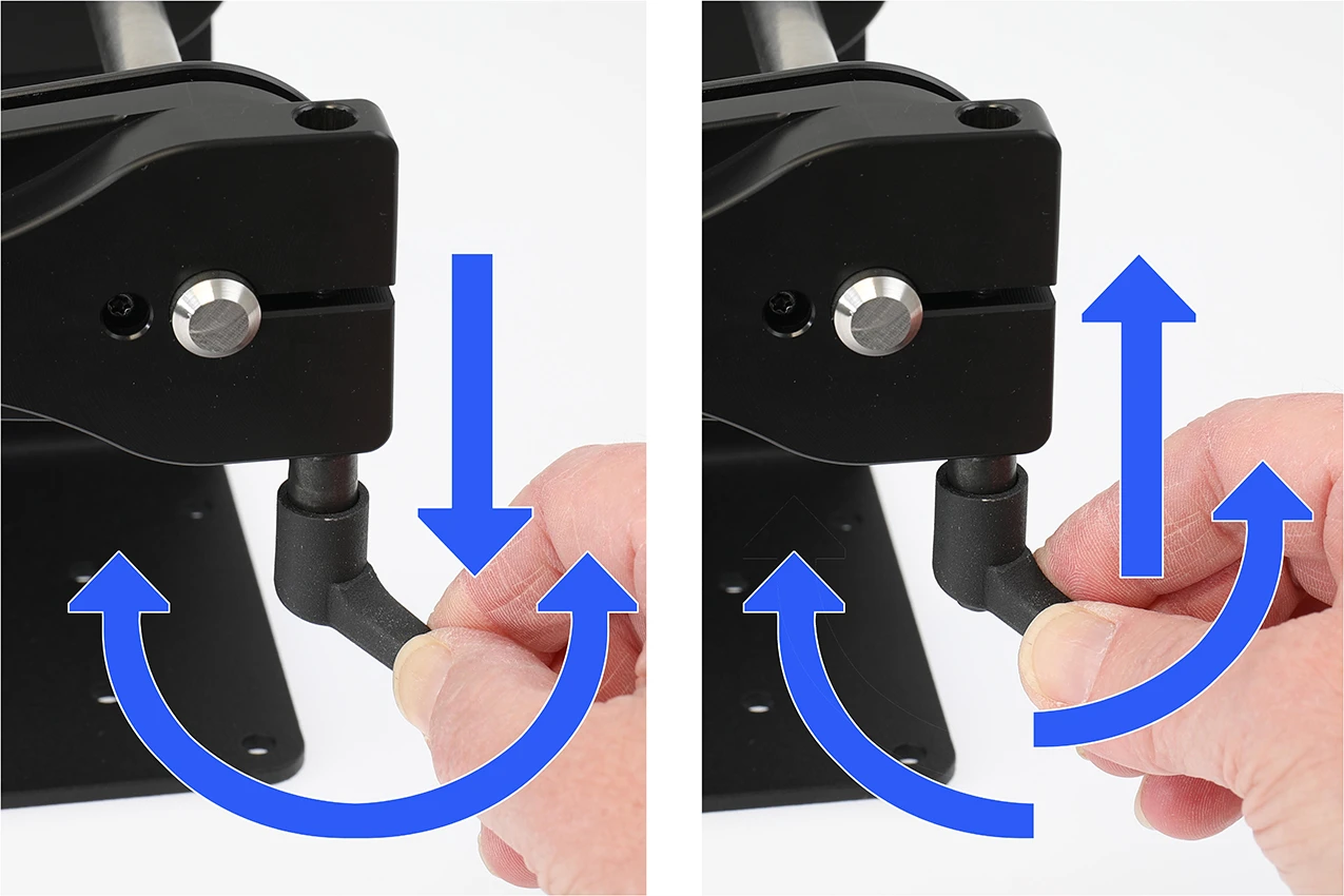 To adjust and lock the label roll, turn the lever sideways to lock. If you need to take a new grip, press the lever down to start over.