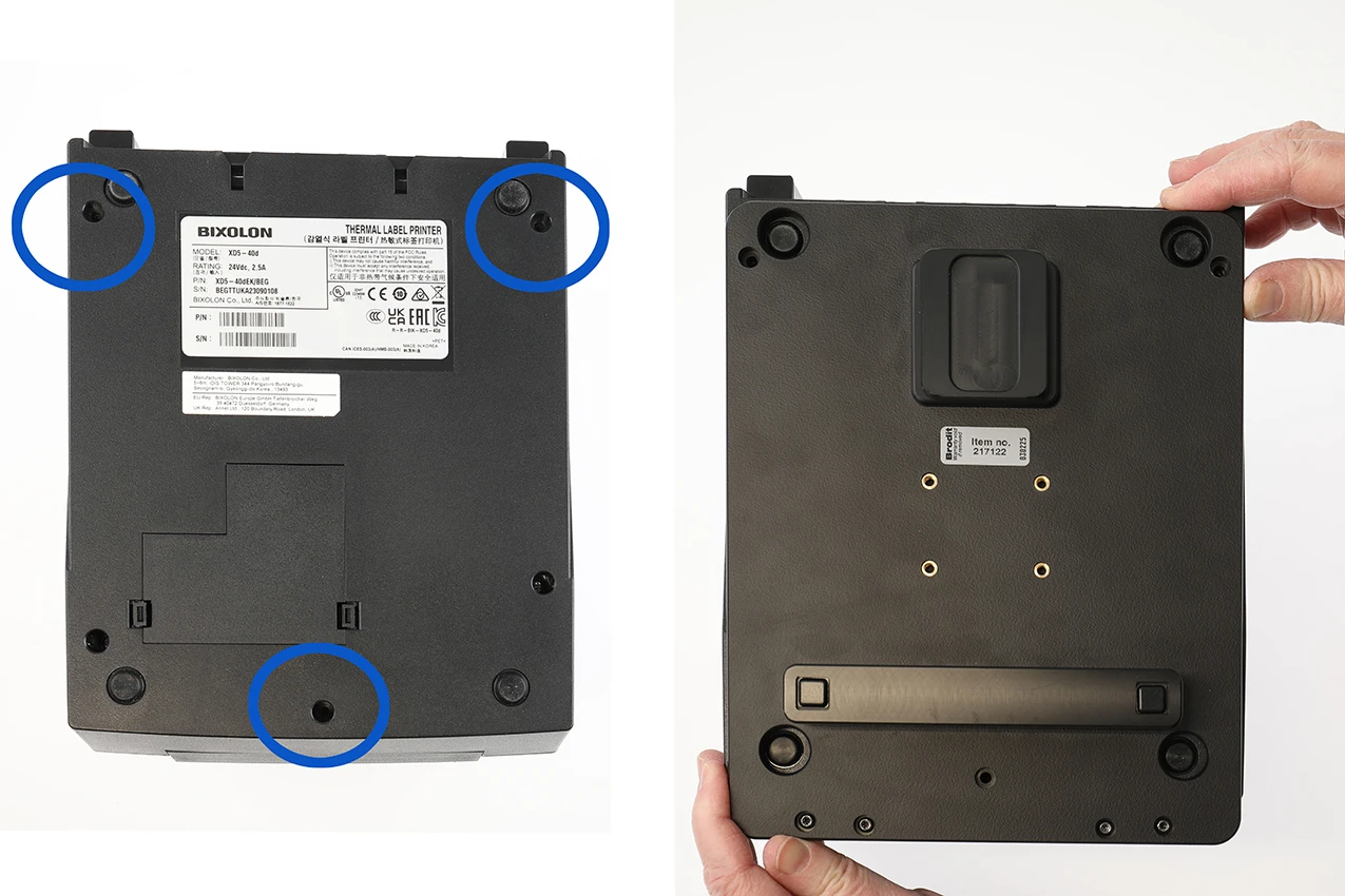 Loosen the screws in the printer. Place the mount on the printer so that the holes match.