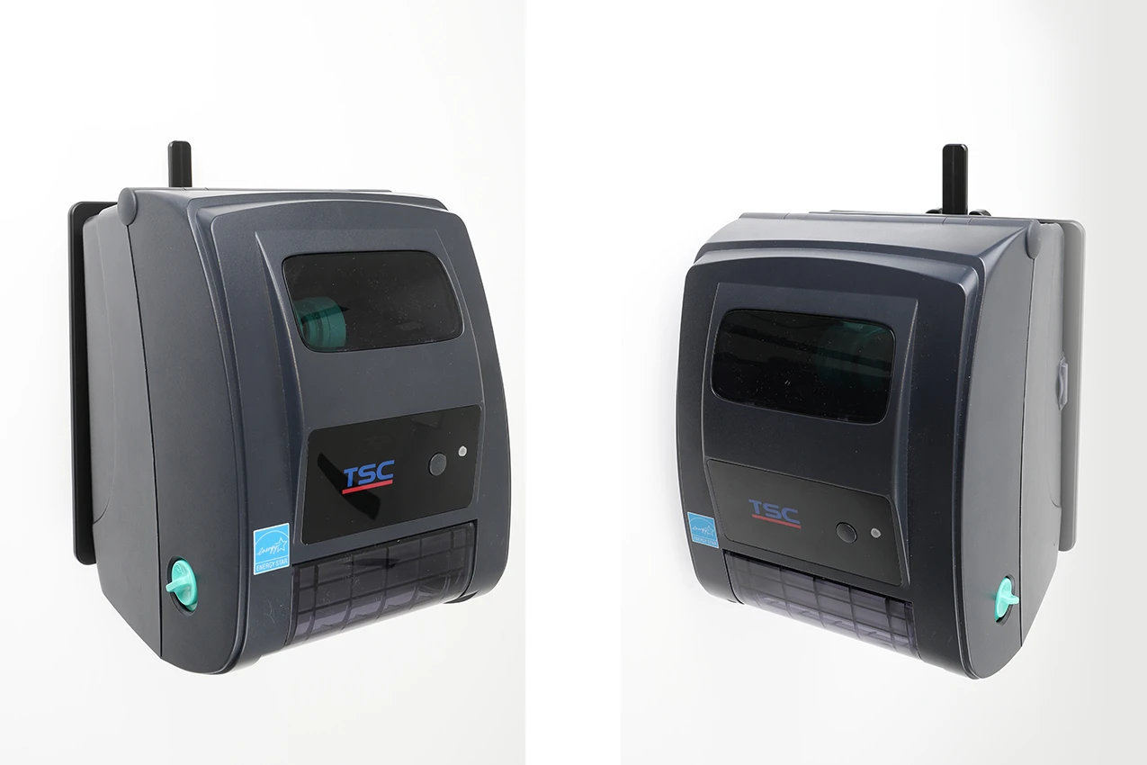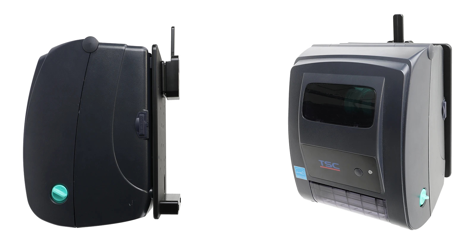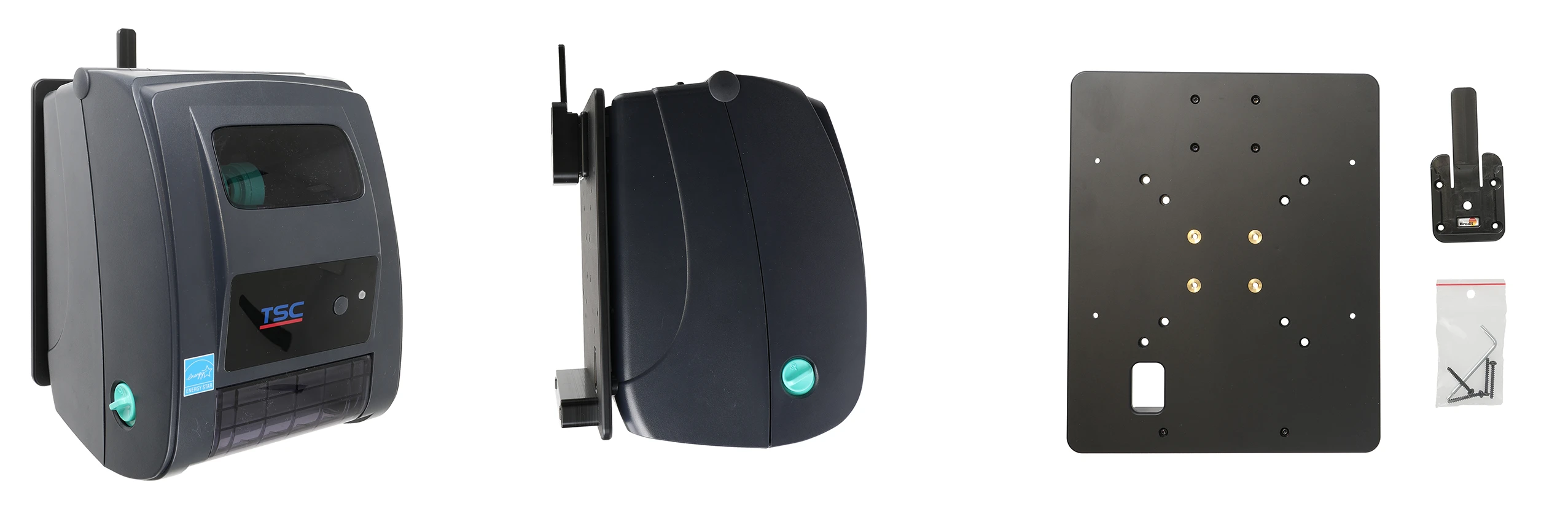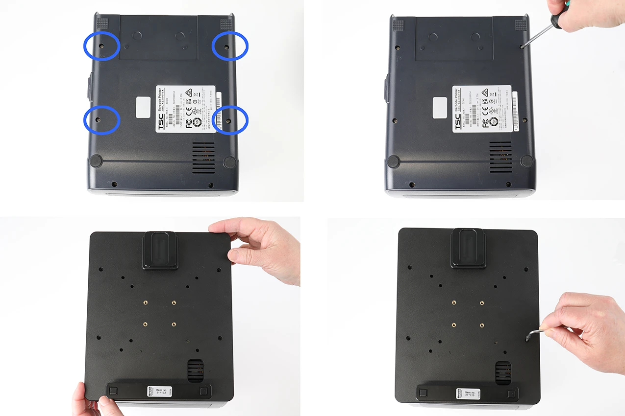 Loosen the screws in the printer. Place the mount on the printer so that the holes match secure with the included screws.