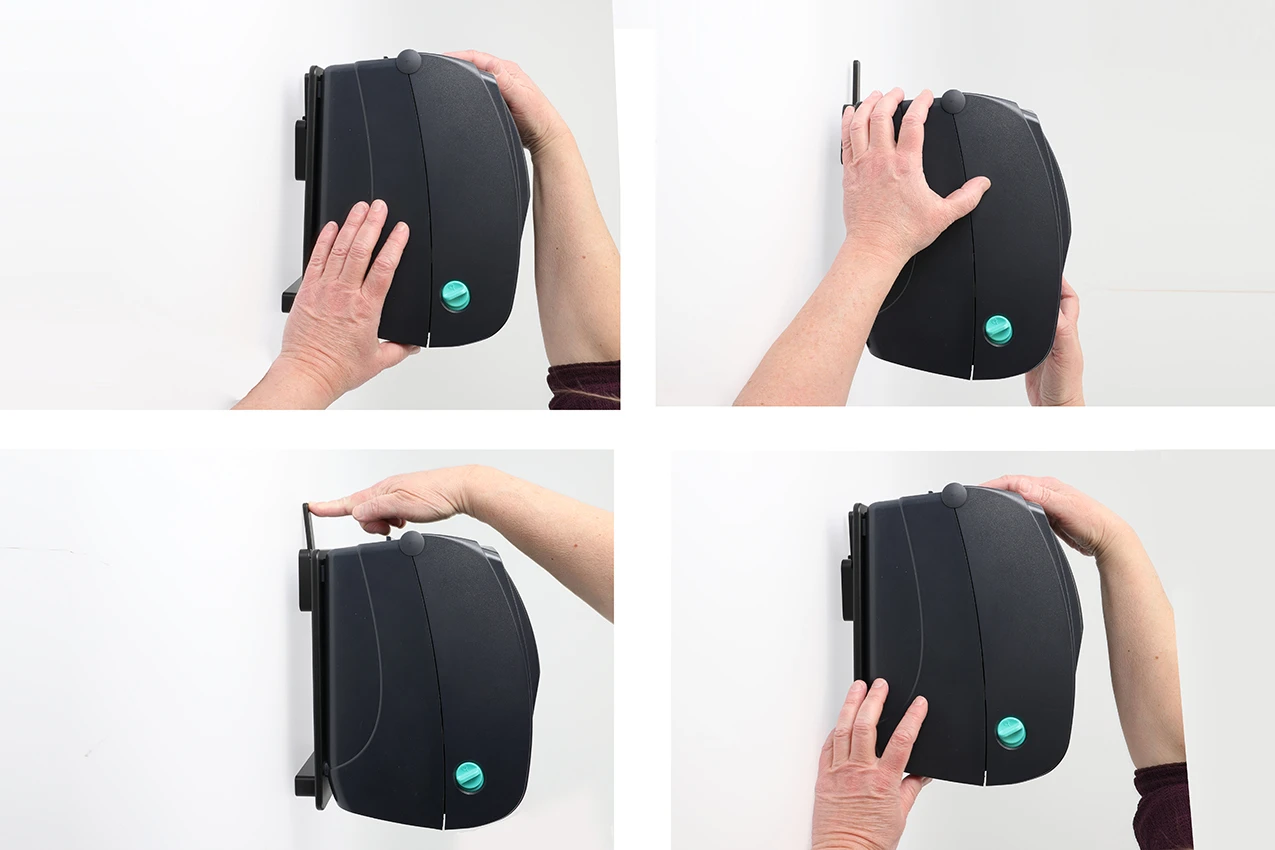 Put the device into place: Hold the device over the MultiMoveClip. Press it downwards onto the MultiMoveClip so it snaps into place. Remove the device: Press forward on the release lever and slide the device upwards away from the MultiMoveClip.