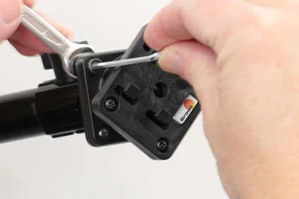 Turn the plate and screw the attaching plate into place with the enclosed screws.