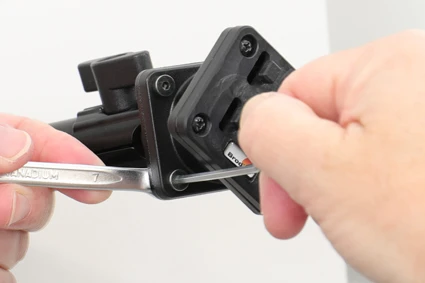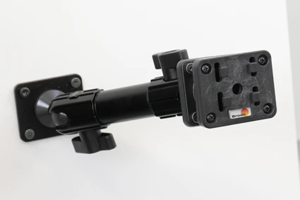 The mount is equipped with a tilt swivel so you can easily adjust the angle for better viewing, or witch easily between portrait and landscape mode. Tilts 17° and swivels 360°. Mounting plate 42x50 mm with 4 mm AMPS-holes. Made of high grade black ABS plastic. Made in Sweden. Attach onto a Pedestal mount.