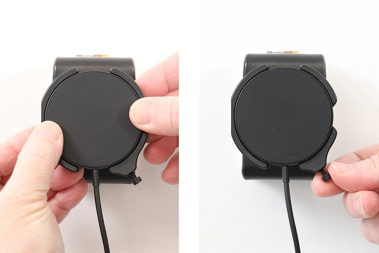 Remove the Magnetic charger from the mount: First loosen the fixing screw then push the Magneticcharger out of the mount.