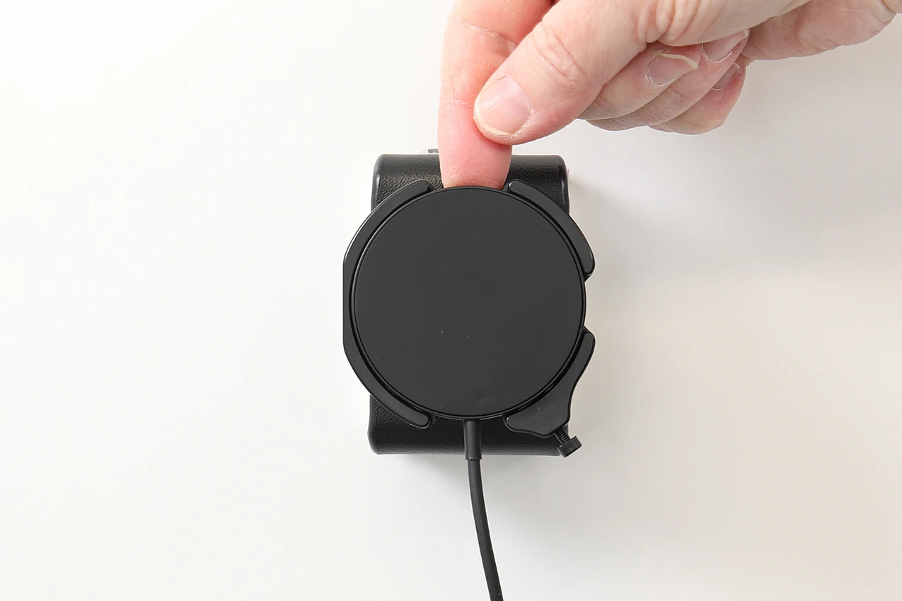 Carefully press the Magnetic Charger downward and forward so it goes into the mount, tighten the fixing screw.