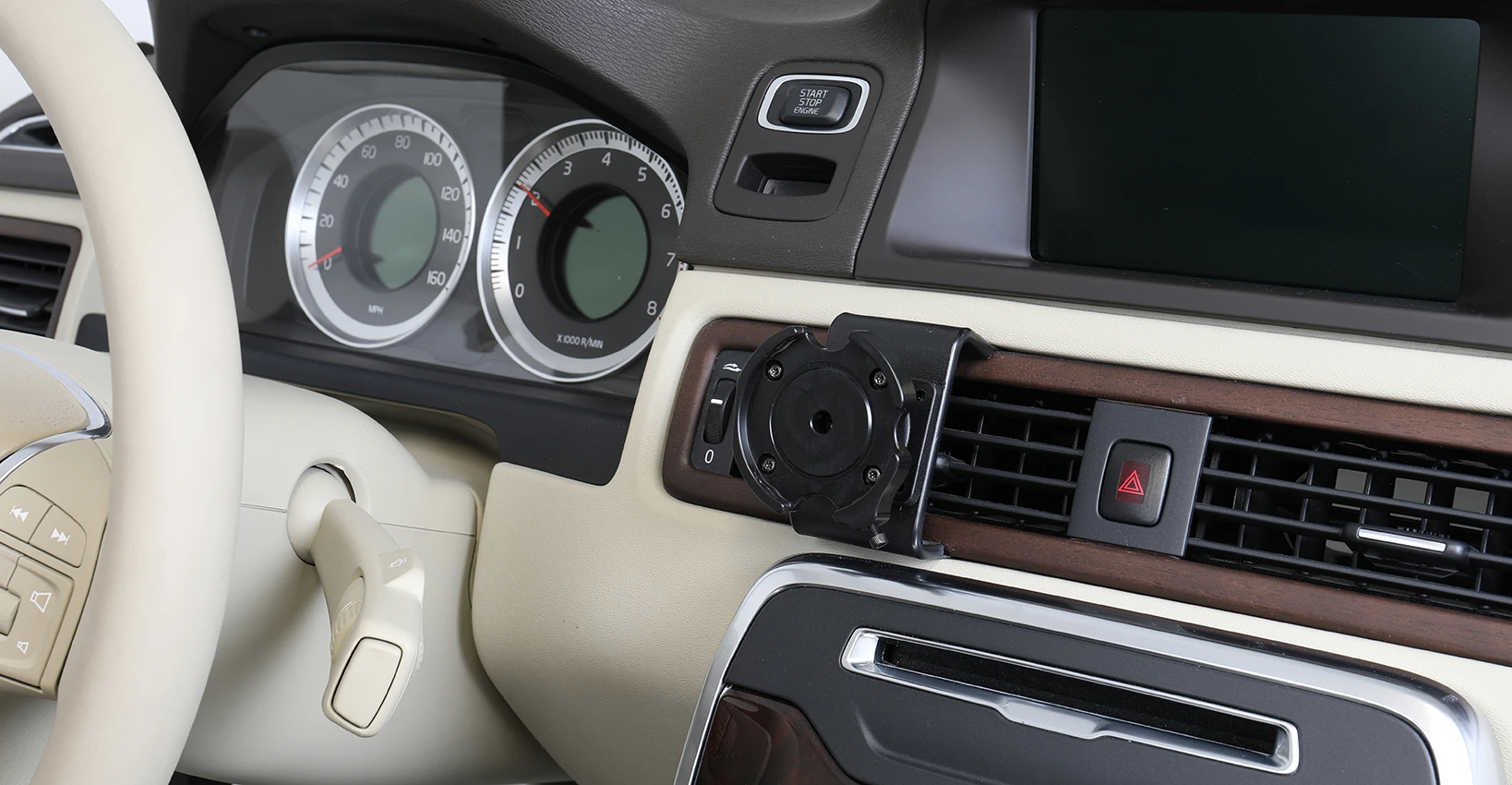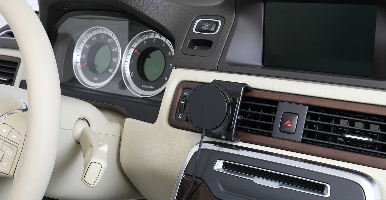 The mount is in place. The mount to hold an Magnetic Charger is designed for use in ordinary driving conditions. Please be aware that in certain situations, such as driving on bumpy roads or a sudden braking/maneuvering of a vehicle, it is possible that the Magnetic Charger device may be dislodged from the mount holding it. Use of the mount holding an Magnetic Charger is at the user’s sole discretion and risk. Brodit AB is not responsible for any damage caused by a device being dislodged from the mount holding a Magnetic Charger.