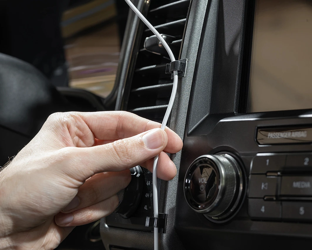 Say goodbye to loose and tangled cables! Keep your charging cords organized with this adhesive cable clip. For easy installation on most surfaces. Perfect for keeping organized in your car, on your desk or anywhere you use cables. For example, the cable clip can be easily be attached to your dashboard for a neat and practical cable path from your device holder to your charging port.