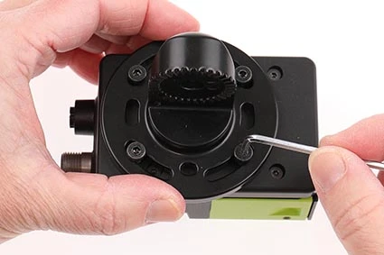 Place the Pedestal top mount so that the holes on the mounting plate line up. Secure with the included screws.